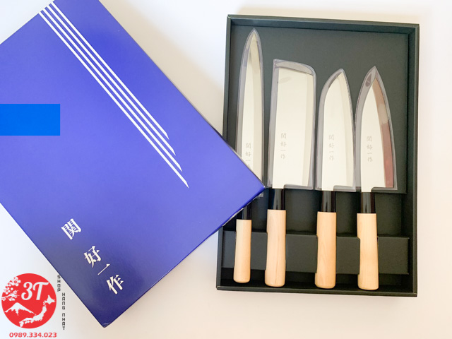 Quy cách: bộ 4 dao Made in Japan, có màng bọc lưỡi dao