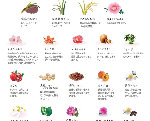 - Chiết xuất cỏ Nhật giúp cho mái tóc óng ả, suôn mềm, thêm vào đó là gạo lứt với công dụng trong việc phục hồi các lớp sừng trên tóc bị mất đi.