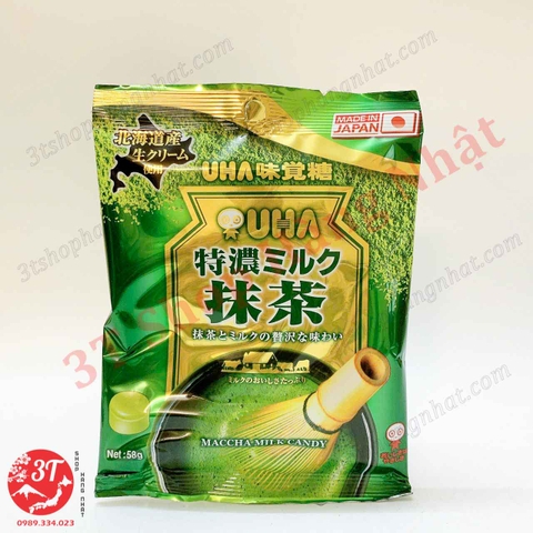 - Kẹo sữa matcha milk UHA 58g được hàng triệu người yêu thích bởi hương vị hảo hạng của Capuchino trà xanh nổi tiếng tại đất nước Mặt Trời Mọc.