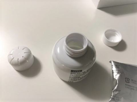 - Hộp gồm 1 gói bột và 1 bình nắp vặn, các bạn lấy gói bột ra đổ vô bình rồi nắp đúng khớp của hộp sử dụng nhé.