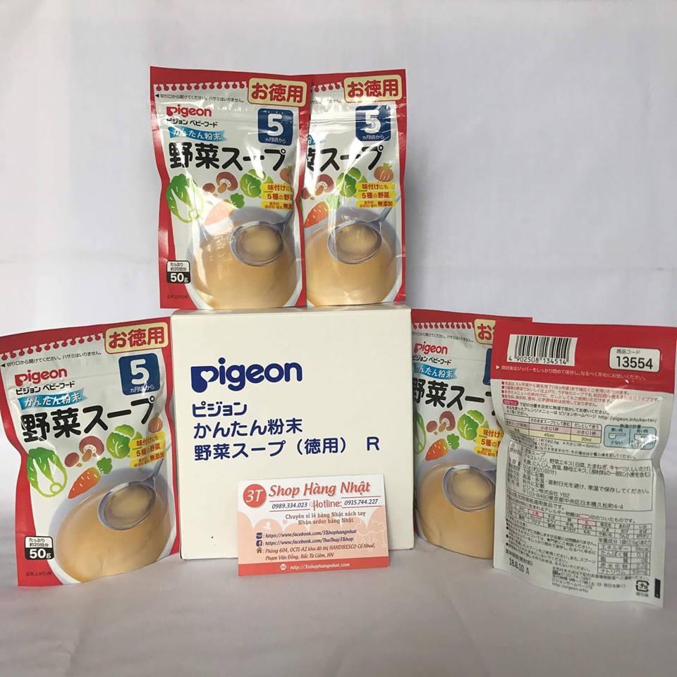 * Nước dùng Dashi Pigeon vị rau củ được chế biến sẵn và đóng thành gói có trọng lượng 50g.