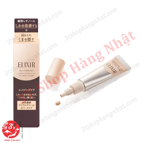 Kem che phủ nếp nhăn ELIXIR với tên đầy đủ là Shiseido Elixir Skin Care By Age Enriched Wrinkle Cream With Natural Coverage là sản phẩm cao cấp của thương hiệu Shiseido Nhật Bản thúc đẩy axit hyaluronic và cân bằng độ ẩm trong da giúp cải thiện nếp nhăn đồng thời bổ sung collagen tươi hòa tan giúp da đàn hồi tốt và săn chắc hơn. Sản phẩm được bào chế ở dạng kem cung cấp các chất dưỡng ẩm có tác dụng phục hồi cho các vùng da khô, cải thiện và làm mờ các nếp nhăn vùng quanh mắt và khóe miệng.