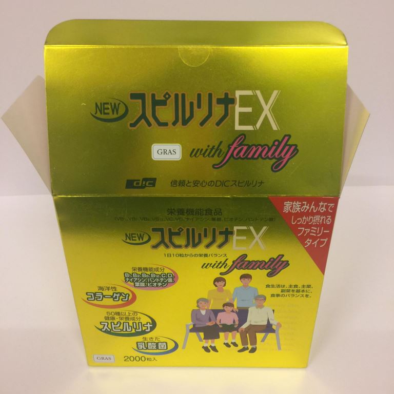 - Tảo vàng cao cấp Spirulina EX có chứa các collagen và vi khuẩn axit lactic, tăng cường các vitamin, là một loại thực phẩm dinh dưỡng cao".