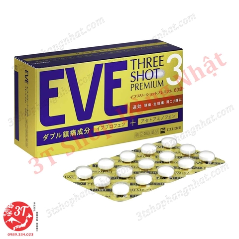EVE THREE SHOT PREMIUM là dòng viên uống giảm đau thế hệ mới đến từ Nhật Bản, với công thức đột phá chứa gấp đôi hoạt chất giảm đau so với sản phẩm truyền thống, nhanh chóng chiếm vị trí số 1 trong các dòng giảm đau cao cấp tại thị trường Nhật.