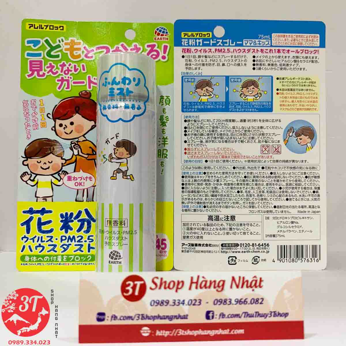 ★ Hướng dẫn sử dụng Xịt kháng khuẩn Earth chống virus,phấn hoa, bụi mịn PM2.5: